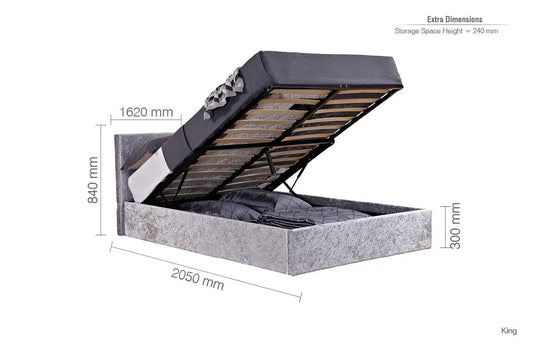 King Size Ottoman Bed Frame, with Front Drawer - Grey
